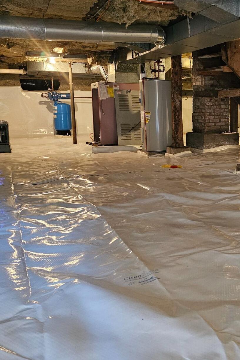 To provide the crawlspace of their home with ultimate vapor control homeowners in White River Jct., Vermont, hired Matt Clark's Northern Basement Systems.
