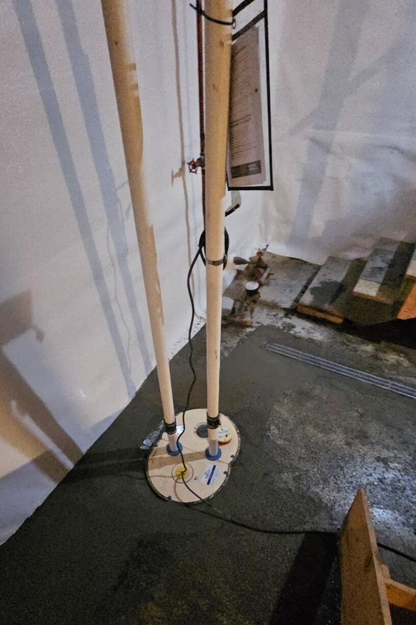 A homeowner in Hinesburg, Vermont, called the waterproofing experts at Matt Clark's Northern Basement Systems looking to replace an old, inefficient sump pump. They explained that the pump does work, but can never keep up with the amount of water entering the basement. After a free estimate, a team of certified, highly trained, professional installation specialists installed a Triple Safe Sump Pump, Water Guard Drainage System, and an Ice Guard Discharge System. The homeowner's new sump pump will have no problems keeping up with any water entering the basement. The Triple Safe sump pump is capable of pumping out up to 3,900 gallons per hour and had a battery back-up pump, capable of pumping out 11,500 gallons on a single charge.
