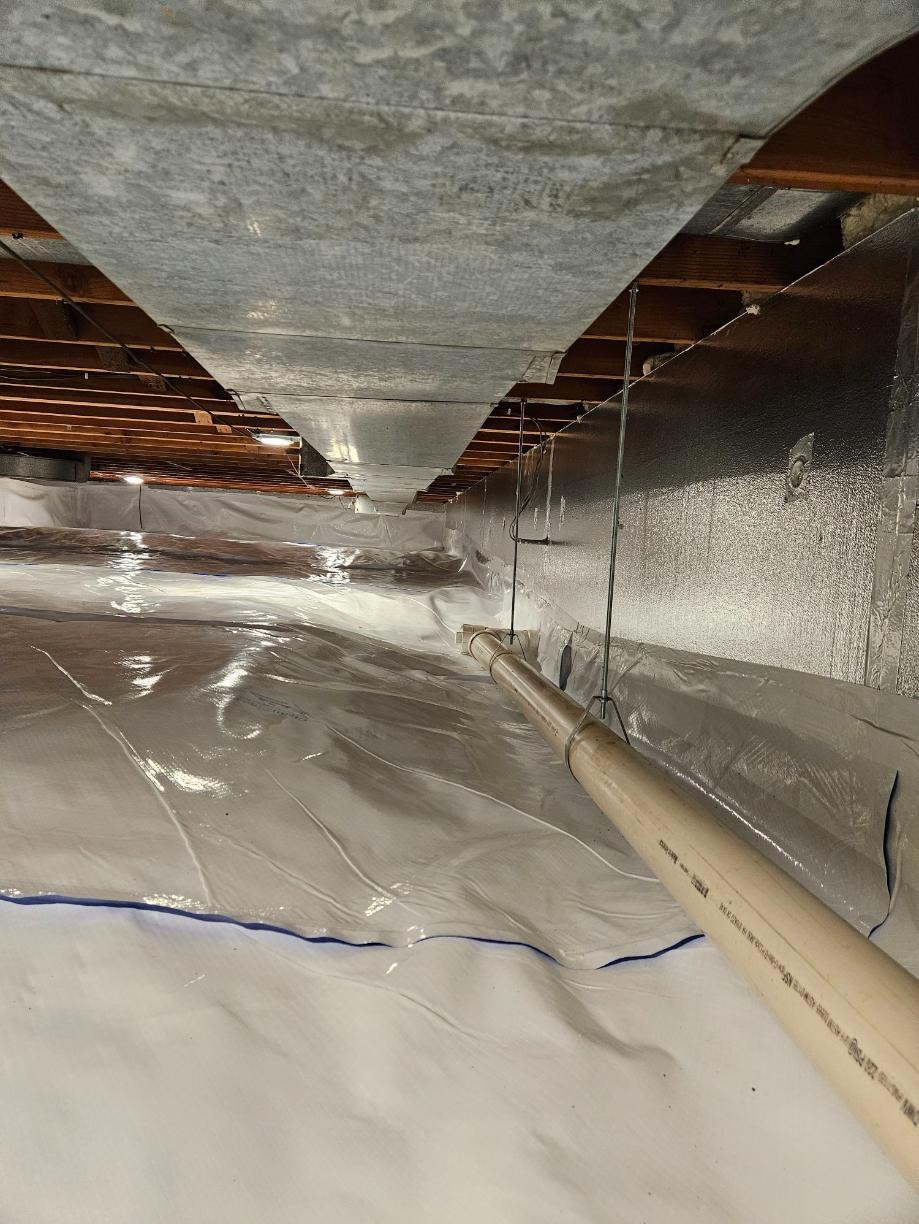 To eliminate the dampness and water that had accumulated in the crawlspace, we encapsulated their crawlspace with our CleanSpace Wall System. Think of CleanSpace as a thick, durable pool liner. It won't let any water or any kind of moisture seep through, which then protects the foundation of the pool, just like it would a crawlspace. CleanSpace protects the inside of the crawlspace and inside of the home from water entering, which could then possibly cause mold growth. All of these reasons prove why CleanSpace is a vital product!
