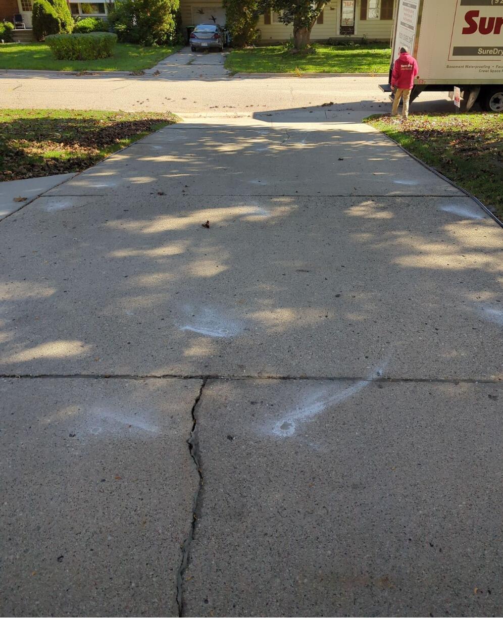 Inspection confirmed voids beneath the driveway caused by soil settlement and moisture movement, common in Wisconsin’s freeze-thaw conditions.