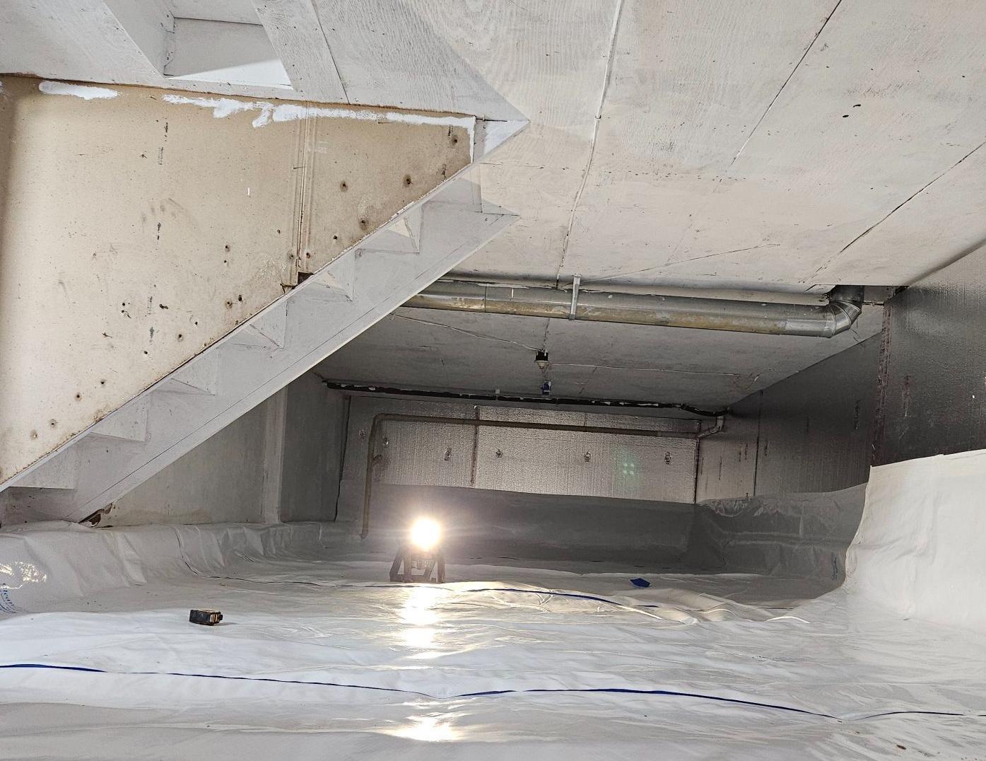 To warm and protect their crawlspace from water, our SureDry team encapsulated CleanSpace. This will remove all chance of water seeping into their wooden floor joists and creating mold. Our team also wrapped SilverGlo around the crawlspace's wall to reflect heat back into the area, to keep it nice and warm.